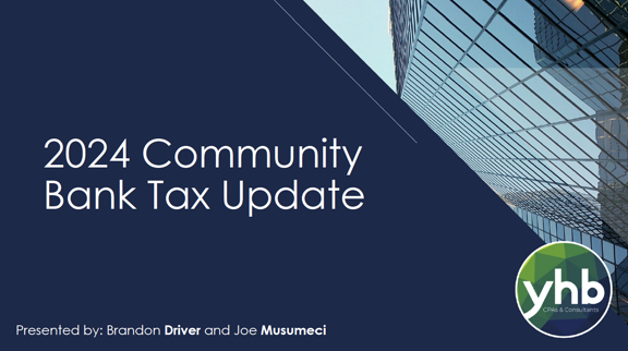 Join us for our 2024 Community Bank Tax Update, where our panel of experts will cover the latest tax developments and key issues affecting community banks. You'll gain valuable insights into bank tax reporting, recent tax legislation, and state income tax complexities. This webinar is a great opportunity to stay informed and ensure your bank is prepared for the evolving tax landscape in 2024 and beyond.