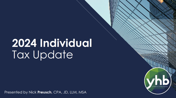 Join us for YHB's year-end individual tax round-up webinar, where we'll recap the year's significant tax changes and regulatory developments affecting you. We've kept you informed quarterly, and now it's time to consolidate these updates to impact your personal financial strategies and tax obligations.